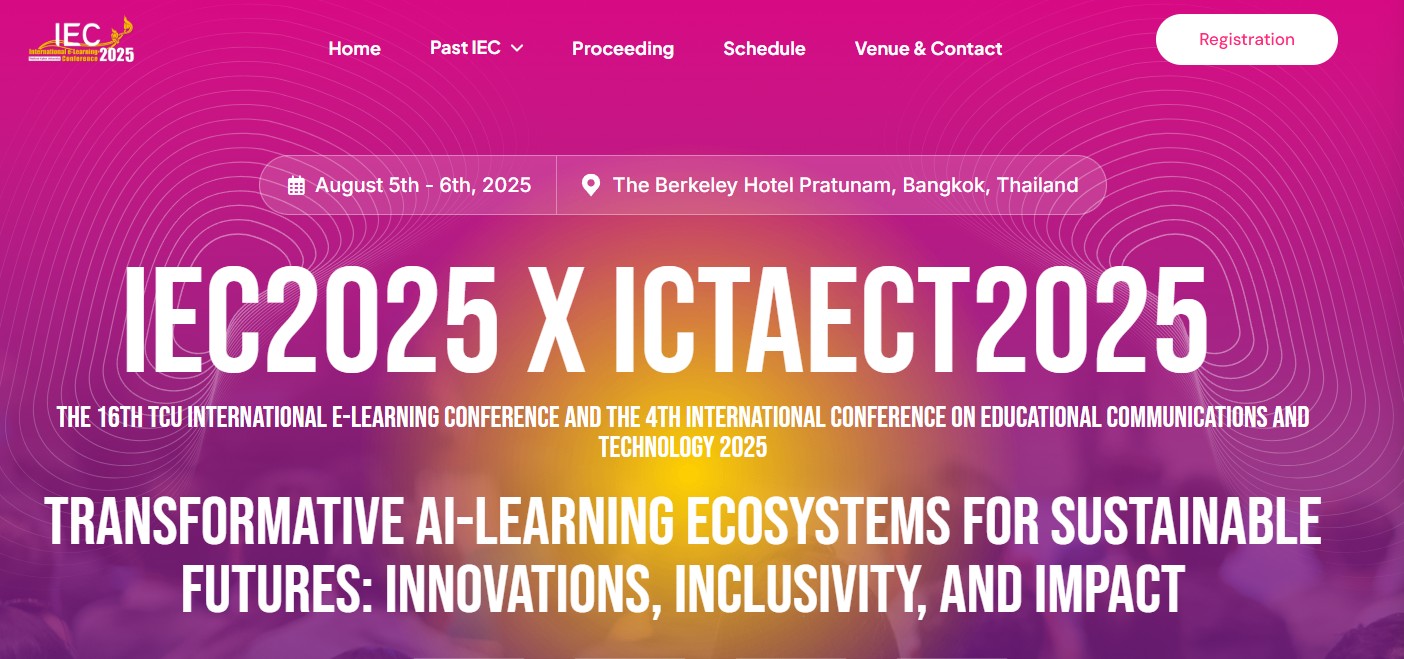 Hosted by Thailand Cyber University, the 14th TCU International e-Learning Conference 2023 (IEC 2023) will provide a dynamic platform for the exchange of knowledge and ideas on the future of online education. This year’s conference will explore two key themes: “Social Change and the Future of MOOCs” and “Smart Learning for a Sustainable Society: Emerging Technologies and Applications” Join us to connect with a diverse audience of educational scholars, researchers, faculty members, students, and enthusiasts interested in the latest advancements in both domestic and international online education. The purpose of this conference is to foster collaboration and share modern knowledge, ensuring that we continue to innovate and advance the field of e-learning for a sustainable future.